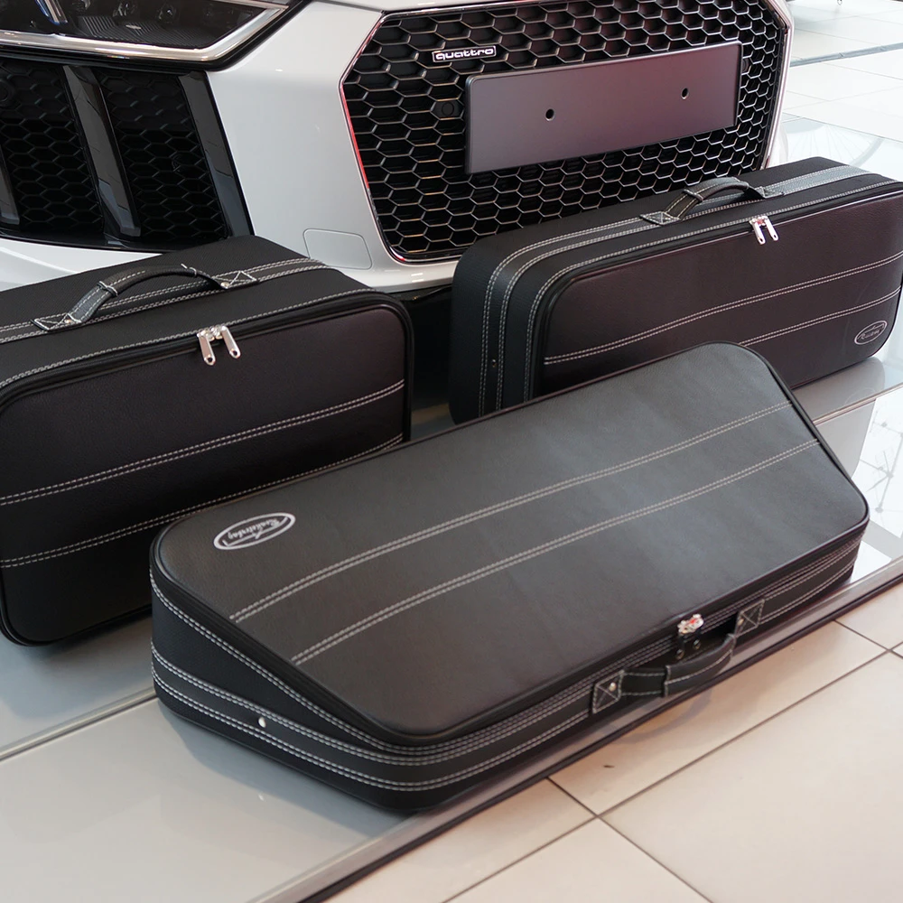 Dieses dreiteilige Kofferset ist die ideale Wahl, wenn Sie mit Ihrem Audi R8 4S Coupé gerne Ausflüge mit großem Gepäck unternehmen. Die drei praktischen Koffer passen durch ihr Design perfekt in den Kofferraum Ihres Wagens. Hergestellt aus italienischem Leder mit einem hochwertigen Innenfutter aus Ancarra®-Mikrofaser und luxuriöser Stickerei sind diese Gepäckstücke optisch absolut gelungen. Ein innovativer Metall-Kunststoff-Verbundrahmen sorgt für die nötige Stabilität. Dank bequemer Tragegriffe lassen sich die Koffer komfortabel transportieren.