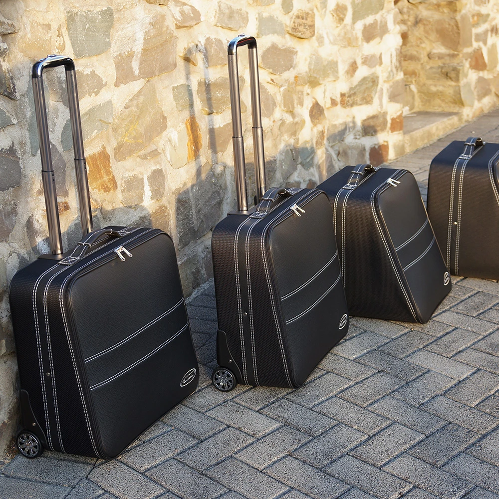 Dieses elegante Auto-Kofferset wird in aufwändiger Handarbeit perfekt auf die Maße des Audi TT Roadster 8J angepasst, so dass Sie den verfügbaren Stauraum für Ihr Gepäck maximal ausnutzen können. Die beiden praktischen Trolleys und zwei geräumige Zusatzkoffer passen durch ihr trapezförmiges Design perfekt in den Kofferraum Ihres Wagens. Hergestellt aus Markenkunstleder mit einem hochwertigen Innenfutter aus Ancarra®-Mikrofaser und luxuriöser Stickerei sind diese Gepäckstücke optisch absolut gelungen. Ein innovativer Metall-Kunststoff-Verbundrahmen sorgt für die nötige Stabilität. Dank bequemer Tragegriffe und modernem Trolleygestänge lassen sich die Koffer komfortabel transportieren.