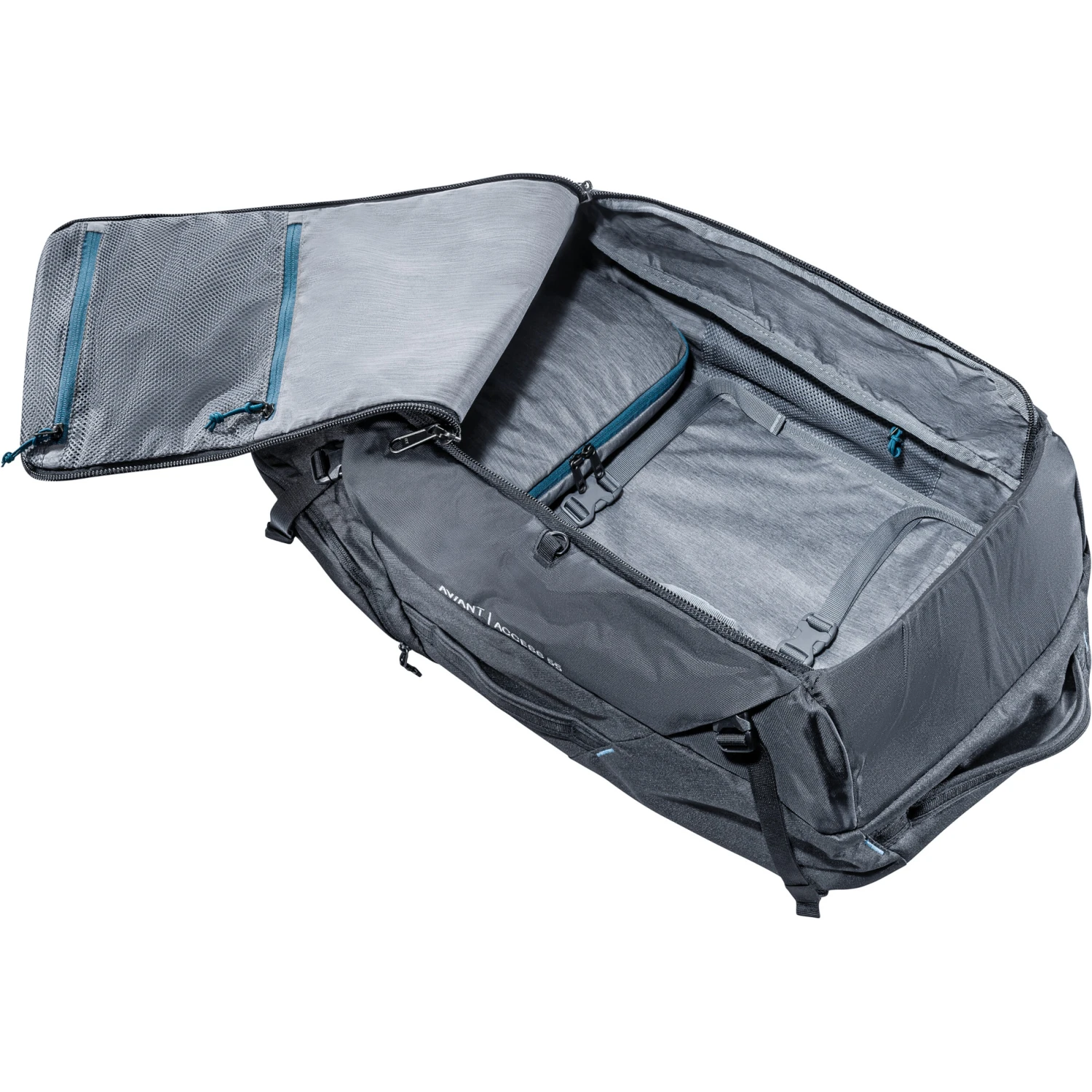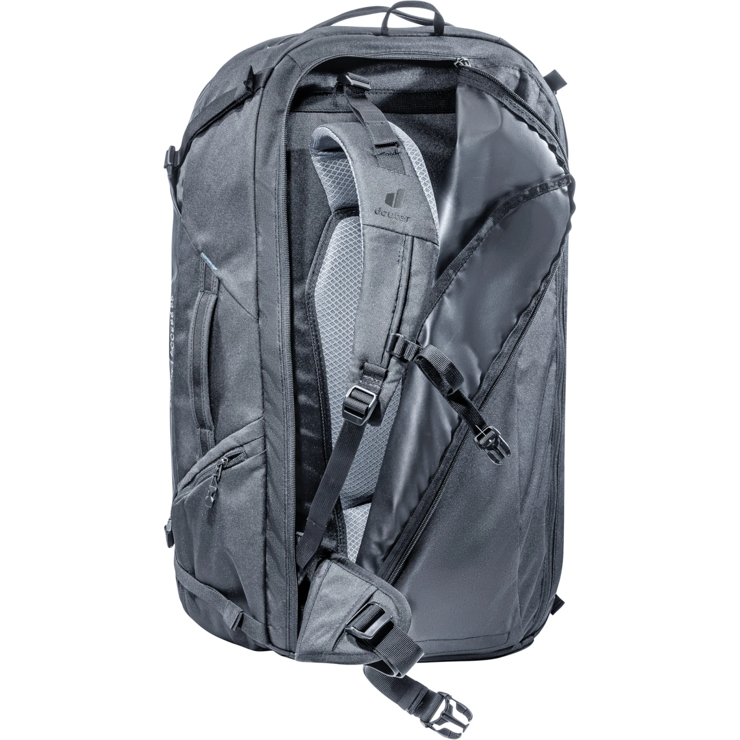 Der funktionale Aviant Access 55 von Deuter bietet dank Contact Rückensystem, stufenlos verstellbarem Brustgurt und gepolsterten Hüftflossen einen hohen Tragekomfort. Gegenstände sind im Innenraum dank gepolstertem Laptopfach und Wertsachenfach gut organisiert. Das aufklappbare Hauptfach mit verstärkten Außenwänden ermöglicht zudem einen schnellen Zugriff. Der leichte, gepolsterte Rücken mit luftigem Bezug sorgt für einen angenehmen Sitz und gleichmäßige Lastverteilung. Die ergonomisch geschnittenen S-förmigen Schulterträger sorgen außerdem für guten Tragekomfort. Der Rucksack kann ganz einfach in ein praktisches, abschließbares Handgepäckstück verwandelt werden, indem Hüftflossen und Schulterträger verstaut und der Brustgurt abgenommen werden.