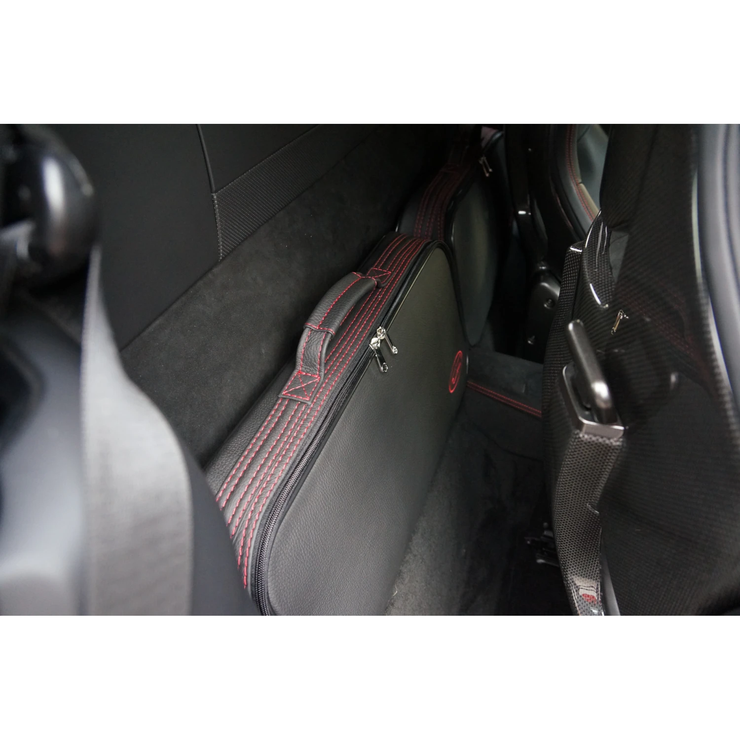 Dieses zweiteilige Kofferset von Roadsterbag ist speziell auf Platz hintern den Sitzen des Ferrari 458 Italia/Spider und des Ferrari 488 GTB/Spider zugeschnitten. Die Koffer nutzen den vorhandenen Stauraum optimal aus. Die erstklassige Verarbeitung und das hochwertige Innenfutter aus edler Ancarra-Mikrofaser verleihen dem Set eine edle Optik, die sich nahtlos in das Innendesign Ihres Wagens einfügt. Dank bequemer Tragegriffe lassen sich die Gepäckstücke komfortabel transportieren.