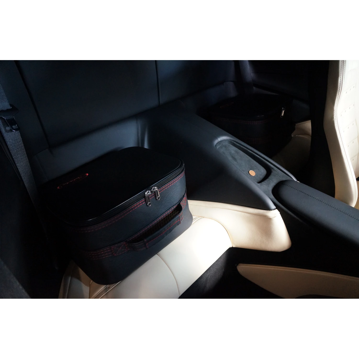 Dieses zweiteilige Kofferset von Roadsterbag ist speziell auf die Rückbank des Ferrari Roma zugeschnitten und ergänzt das dreiteilige Kofferset für den Kofferraum. Die beiden Koffer nutzen den vorhandenen Stauraum optimal aus. Die erstklassige Verarbeitung und das hochwertige Innenfutter aus edler Ancarra-Mikrofaser verleihen dem Set eine edle Optik, die sich nahtlos in das Innendesign Ihres Wagens einfügt. Dank bequemer Tragegriffe lassen sich die Gepäckstücke komfortabel transportieren.