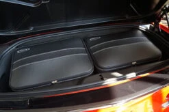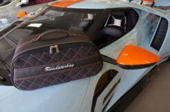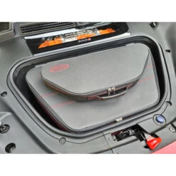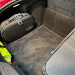Dieses dreiteilige Kofferset von Roadsterbag ist speziell auf den Kofferraum des Ferrari Roma zugeschnitten. Der Trolley und die passenden Koffer nutzen den vorhandenen Stauraum optimal aus. Der Trolley ist mit voll versenkbarem Griff, silikongedämpften, verchromten Laufrollen, Kugellagerung und Inside-Trolley-Technik aus leichtem Aluminium ausgestattet. Die erstklassige Verarbeitung und das hochwertige Innenfutter aus edler Ancarra-Mikrofaser verleihen dem Set eine edle Optik, die sich nahtlos in das Innendesign Ihres Wagens einfügt. Dank bequemer Tragegriffe lassen sich die Gepäckstücke komfortabel transportieren.