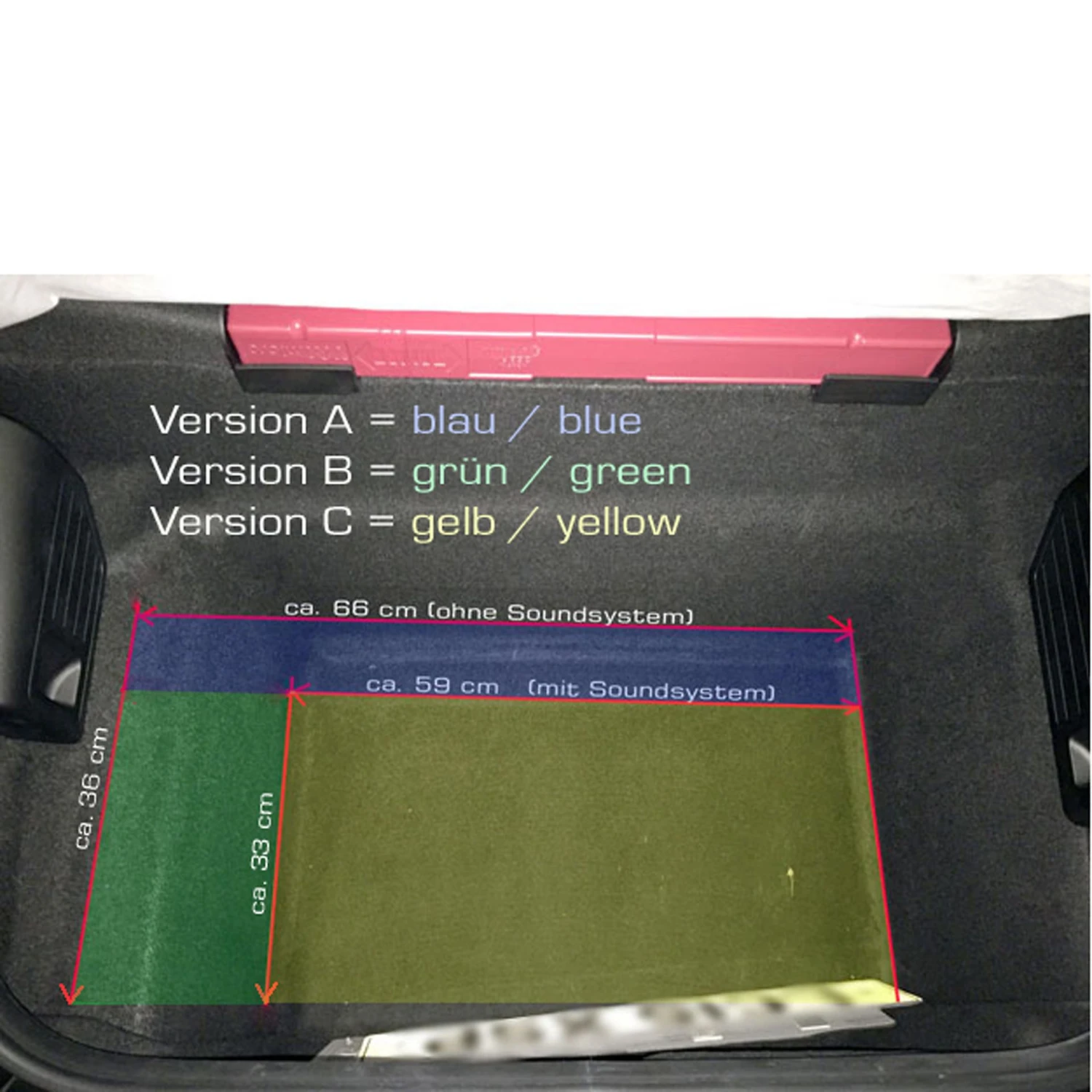 Bitte beachten Sie: Porsche verbaut je nach Ausstattung und Modell unterschiedliche Kofferräume. Bitte messen Sie Ihren Kofferraum vor der Bestellung aus und teilen Sie uns die Maße im Kommentarfeld mit. Für dieses Kofferset sollten die Maße des Kofferraumbodens bei mindestens 66 x 33 cm liegen.
