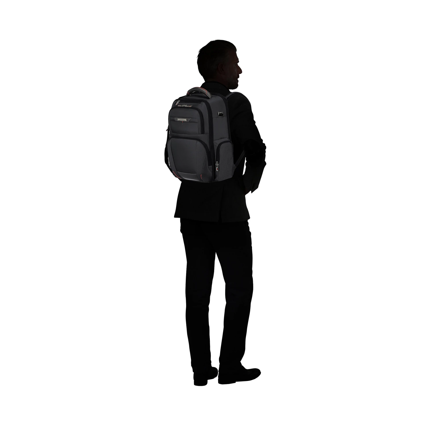 Mit dem funktionalen 3V Laptoprucksack aus Samsonites Pro-DLX 5-Businesskollektion legen Sie stets einen professionellen Auftritt hin, denn er bietet für alles im Arbeitsalltag den richtigen Platz, von Arbeitsunterlagen bis hin zu empfindlicher Elektronik. In einem separaten, rückennahen Fach lassen sich beispielsweise ein Laptop bis zu 15,6″ und ein Tablet oder ein E-Reader sicher verstauen. Dank Easy Pass-Kabelorganisation lassen sich die elektronischen Geräte sogar direkt in der Tasche aufladen. Akten im DIN A4-Format bringen Sie mühelos im übersichtlichen Hauptfach unter und auf der Front halten gleich zwei umfangreich ausgestattete Organizerfächer alles Wichtige schnell griffbereit – von Schreibutensilien bis zur Visitenkarte. Darüber hinaus präsentiert sich der smarte Businessrucksack voll auf der Höhe des technologischen Zeitalters und ist beispielsweise mit einem speziellen Powerbank-Fach und einem Reißverschlussfach mit integriertem RFID-Schutz ausgestattet. Zudem ist dank weicher Rückenpolsterung und ergonomischen Schultergurten stets bestens für den nötigen Tragekomfort gesorgt. Sie sind häufiger geschäftlich auf Reisen? Der 3V Laptoprucksack lässt sich mit einem praktischen Trolley Sleeve auch komfortabel auf Ihrem Trolley befestigen.