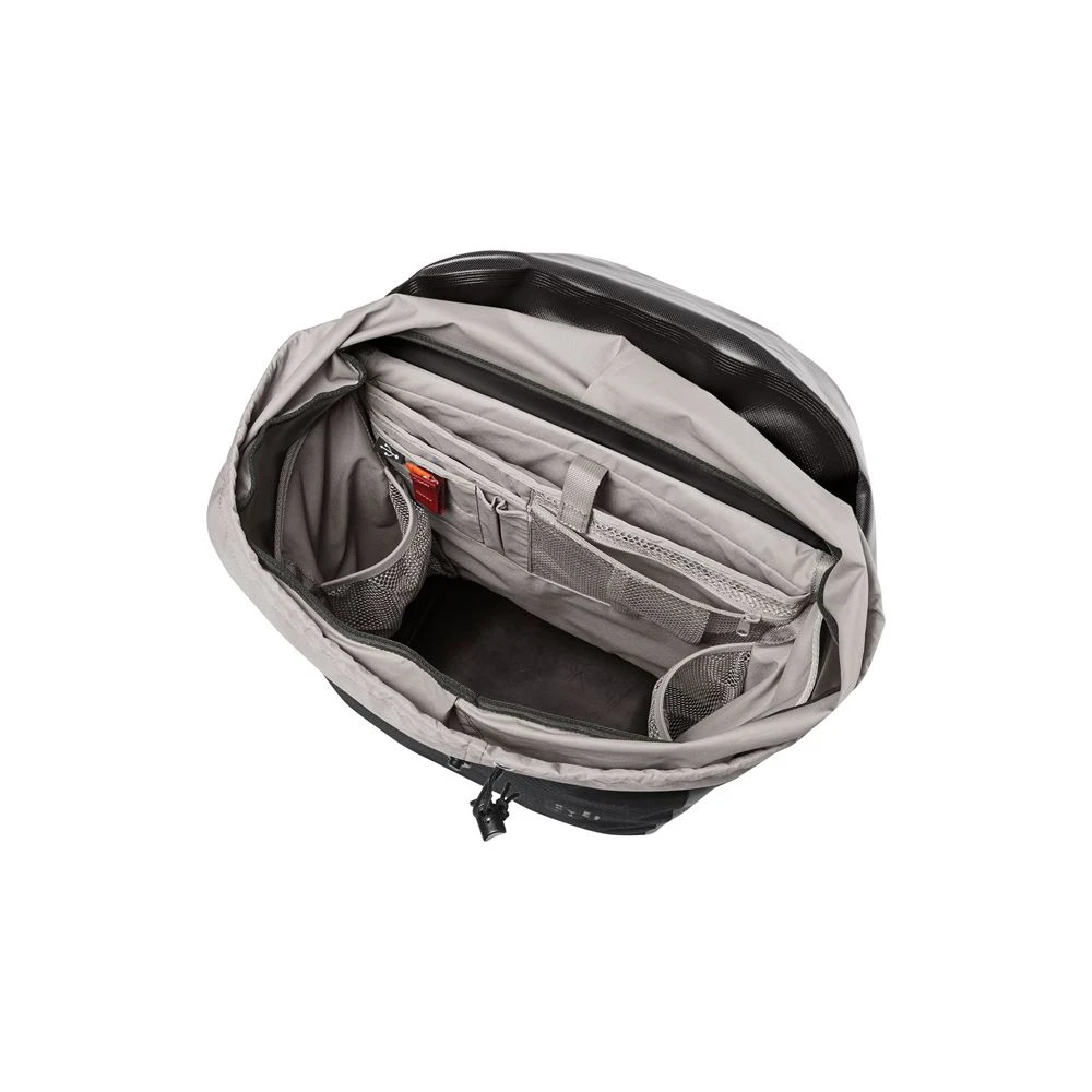 Die klimafreundliche Fahrradtasche Aqua Commute wird aus robustem, PVC-freiem Planenmaterial am deutschen VAUDE-Standort in Tettnang hergestellt und ist ein langlebiger Begleiter auf dem Arbeitsweg. Die Tasche ist mit reflektierenden Elementen bedruckt, absolut wasserdicht verschweißt und kann durch den Deckelverschluss schnell geöffnet und wieder verschlossen werden. Die Innenausstattung ist für den Büroalltag zugeschnitten: Das gepolsterte Laptopfach, Stifthalter und diverse Einsteck- und Reißverschlussfächer helfen, den Inhalt übersichtlich zu ordnen.
